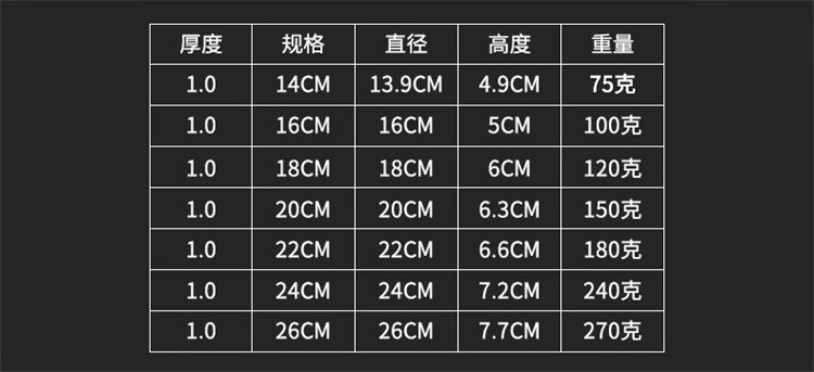 【304 1.0特厚18cm湯盆】-4個(gè) 【1.0特厚14cm湯盆】-10個(gè) 【304 1.0特厚22cm湯盆】-3個(gè) 【304 1.0特厚16cm湯盆】-5個(gè) 【304 1.0特厚24cm湯盆】-3個(gè) 【1.0特厚18cm湯盆】-5個(gè) 【304 1.0特厚26cm湯盆】-2個(gè) 【05厚16cm湯盆】-12個(gè) 【05厚26cm湯盆】-5個(gè) 【1.0特厚16cm湯盆】-7個(gè) 【05厚18cm湯盆】-10個(gè) 【05厚20cm湯盆】-9個(gè) 【304 1.0特厚14cm湯盆】-5個(gè) 【304 1.0特厚30cm湯盆】-2個(gè) 【304 1.0特厚28cm湯盆】-2個(gè) 【1.0特厚24cm湯盆】-4個(gè) 【1.0特厚20cm湯盆】-5個(gè) 【1.0特厚22cm湯盆】-4個(gè) 【304 1.0特厚20cm湯盆】-3個(gè) 【1.0特厚26cm湯盆】-3個(gè) 【05厚14cm湯盆】-14個(gè) 【05厚22cm湯盆】-7個(gè) 【05厚24cm湯盆】-6個(gè)